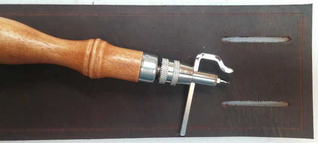 Usé una Ranuradora costura con motivo de mis líneas de puntada, luego había perforado los agujeros con un cincel de costura (espaciado de 4mm) y cosidas las piezas juntas con la puntada de silla de montar. Si quieres algún detalle sobre la costura de silla de montar, Compruebe hacia fuera este Instructable o golpeó las interwebs... hay un montón de gran costura tutoriales por ahí. Otro gran tutorial es de Cuero de Armitage.
