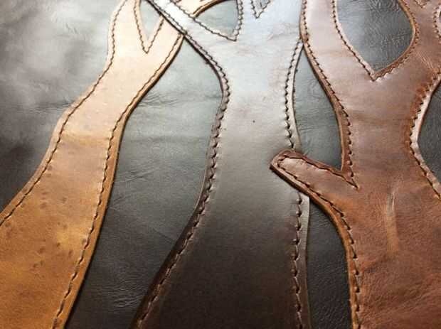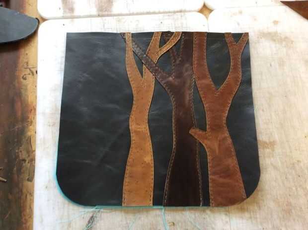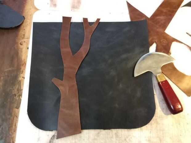 Me encanta decorar mis artículos de cuero con árboles. Tan sólo se cortan algunos diseños de árbol fuera del cuero de desecho y luego pegar y coser en.