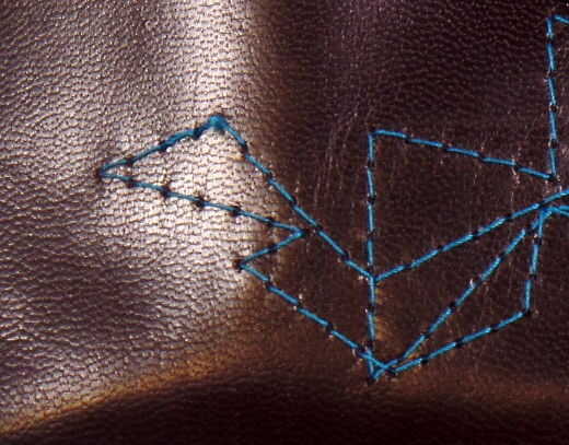 Puede utilizar diferentes colores y patrones de costuras. Coser a mano o usar una máquina de costura (ADVERTENCIA: Asegúrese de que está la máquina de coser es capaz para cuero coser).