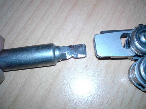 ranura de la broca. Había medido con un micrómetro y necesita llegar hasta unos 3 mm.