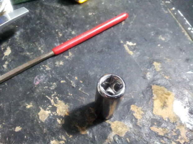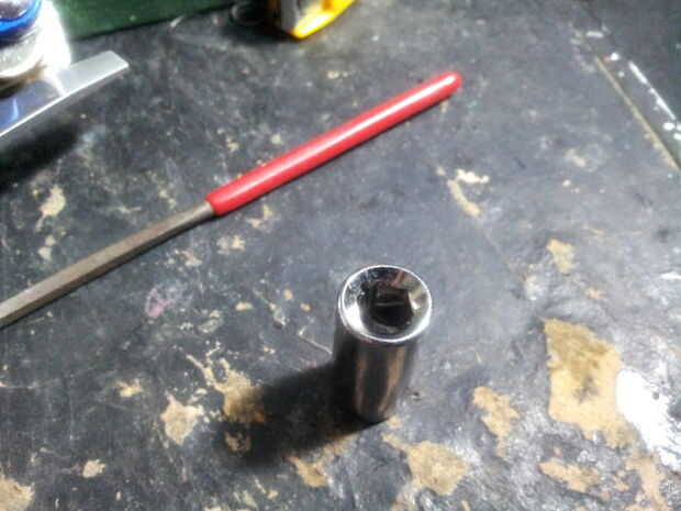 Un pequeño archivo del mismo grosor con destornillador de cabeza plana de sidekick, unos 2 mm de espesor