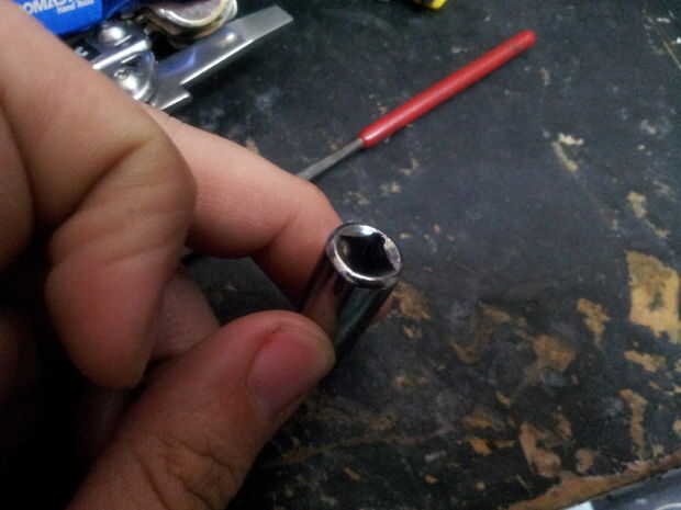El lado de escudero de un regular 1/4" adaptador de broca, casi debe encajar en el destornillador de cabeza plana