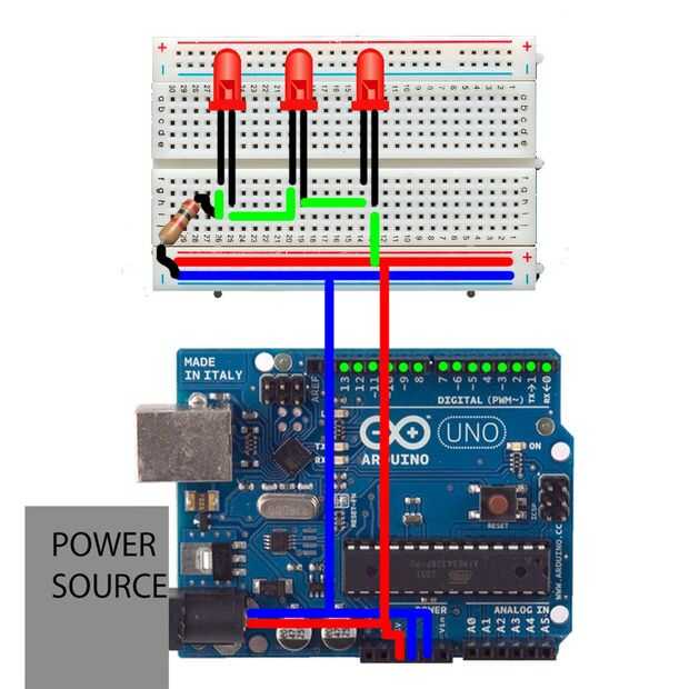 -Desde el poder, añadir un cable, conectar la alimentación a la pata larga del LED a la primera *.