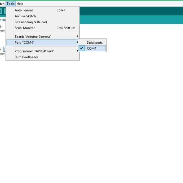 A continuación, haga clic en la pestaña de la ventana con la etiqueta «herramientas», como se ve en la segunda imagen. Un menú debe bajar. Pasa el cursor sobre "puerto" y una lista de números de debe venir de eso. Cada número representa un USB han unido al equipo que puede cargar código en arduios de todo tipo. Haga clic en el número adecuado asociado con la USB que utilizas para tu arduino. Una marca de verificación debe ser el siguiente también, como se ve en la segunda imagen.