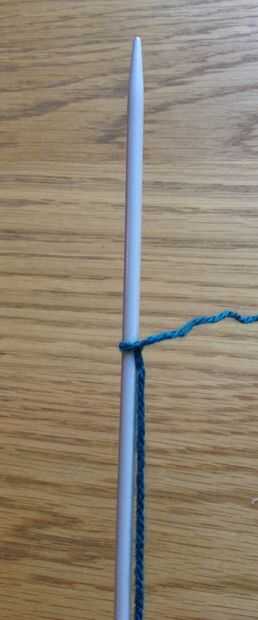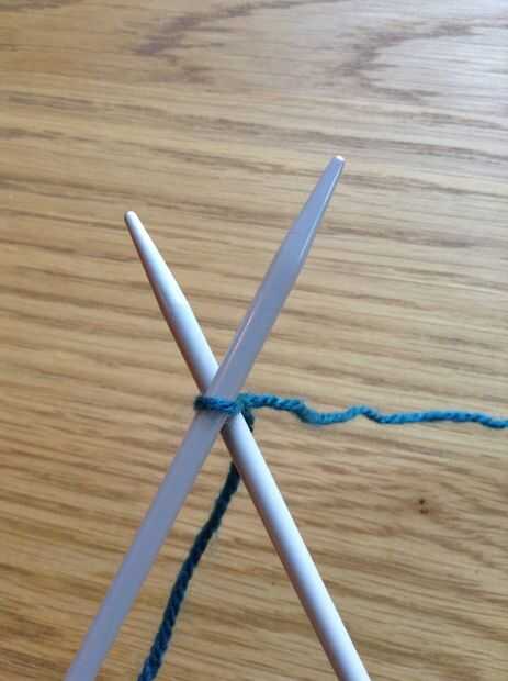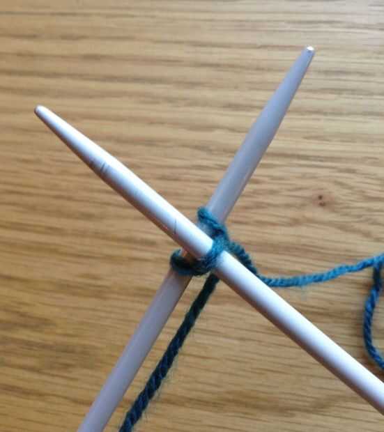 Paso cuatro: Deslice la aguja derecha hacia abajo y sobre la lana