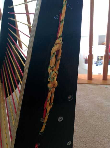 Tuve suerte de tener un amigo fisherperson para pedirle ayuda, porque ella sabía todos los nudos de derecha a lazo para mantener los cables firmemente. Curiosamente, ella usó enganche de un camionero.