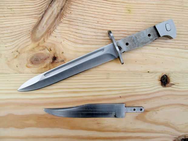 1. una espiga completa falsificación bajonet AK-47 y un tang arraigada (u oculto) mi primer cuchillo Bowie-hoja ;)