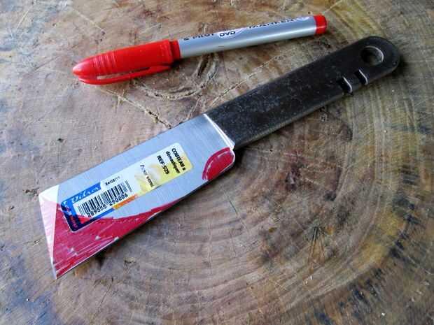 Un amigo me había dado unos 'cuchillos de Cristalerías' - cuchillos especialmente diseñados para hackear a la masilla desde las ventanas de la vieja escuela. Estos cuchillos están hechos de carbono 4 mm acero, forjado y bastante barato (incluso 10$ - que es lo que pagué por él...).
