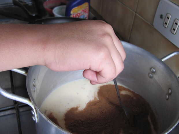 Este es el postre tradicional que se hace en la cultura hispana.Paso 1:Reunir estos ingredientes para su primer paso4 tazas de agua1 taza de arroz2 rajitas de canela1 12 oz de leche evaporadalechera de 14 oz, sabor de una taza de azúcar antes de añad