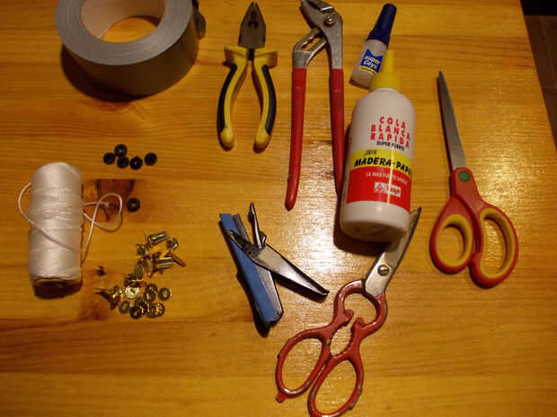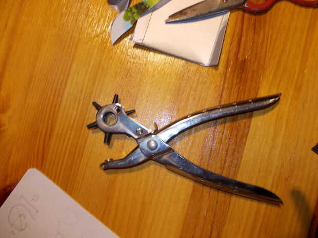 - Agujereador para piel (aunque uno de oficina grande, también servirá), (perforadora de cuero),