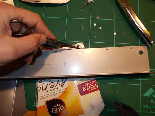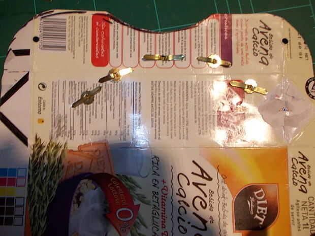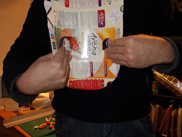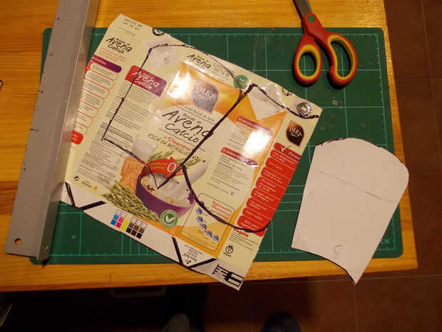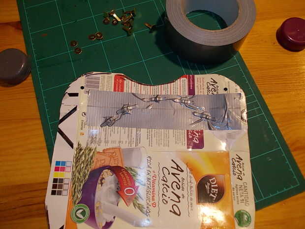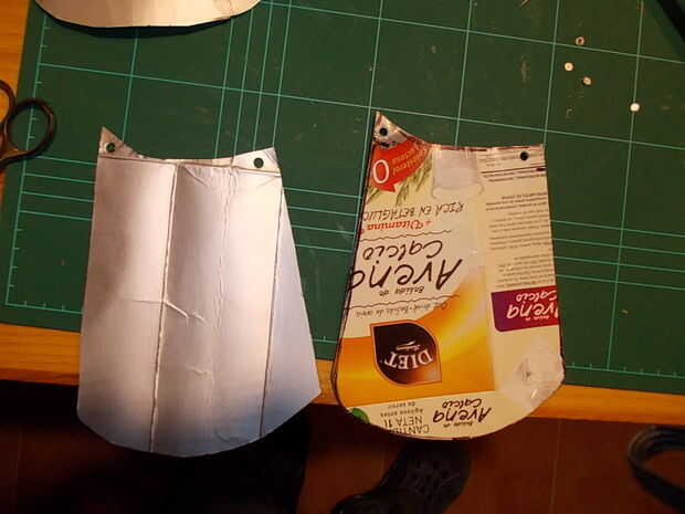 Para la pieza de coraza, utilizo toda una hoja de cartón de leche con los bordes redondos corte.