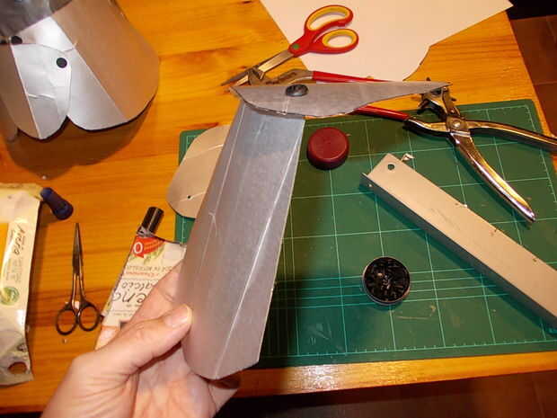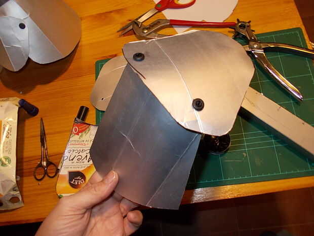 Me uní a una a la otra con remaches de plástico y pegamento instantáneo como lo hice para el casco.
