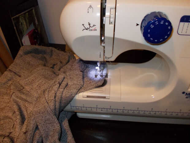 Una vez el niño con el pijama, clavó el pijama con los pernos de sus medidas. Después de esto, cosí para ajustar el pijama en la forma deseada y cortamos a la tela sobrante.