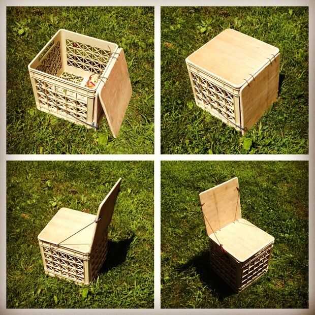Cajas de leche son grande forma de almacenamiento modular! Se me ocurrió un simple upgrade que te permite utilizarlos como una silla para maximizar espacios pequeños. Perfecto para camping, vinilo, dormitorios y pequeñas casas.