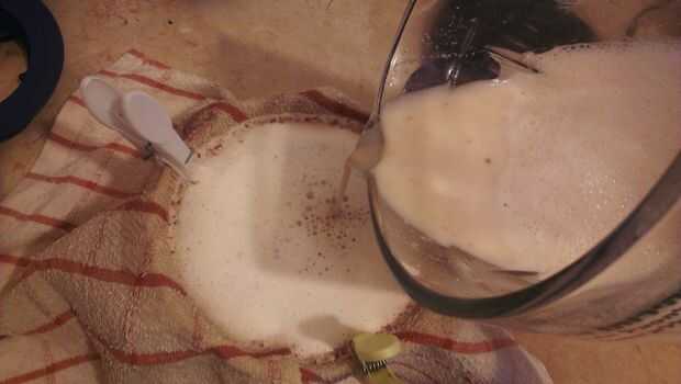 Coloque la toalla sobre la jarra dejando una depresión para el polvo de almendras (después de moler) para recoger y fijar con los clips.