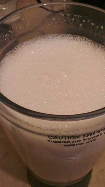 leche de almendras:16 onzas de almendrasRemoje las almendras en agua por 1 díaMezcla una taza de almendras con agua dos veces más aguaPrimero:Tensión con un paño de quesoSegunda tensión:Cepa con una prensa francesaVierta su leche de la almendra en un