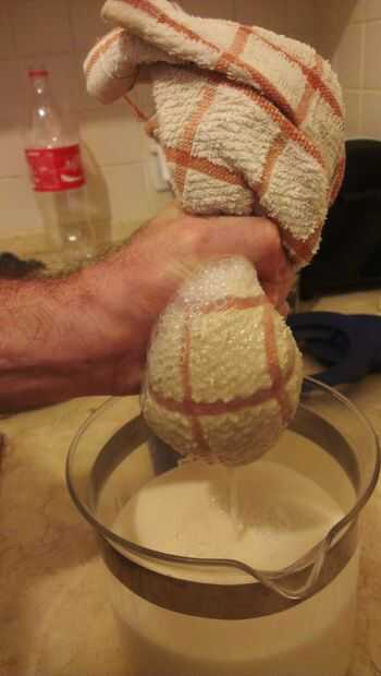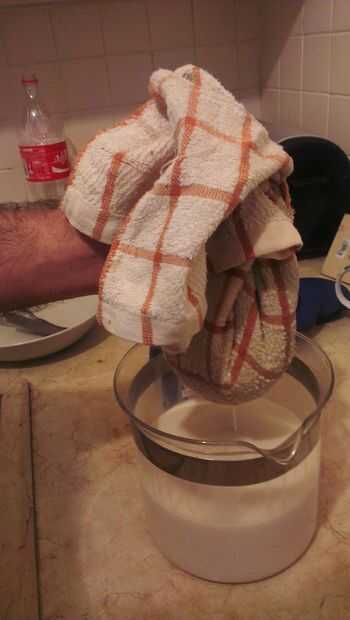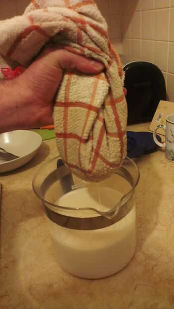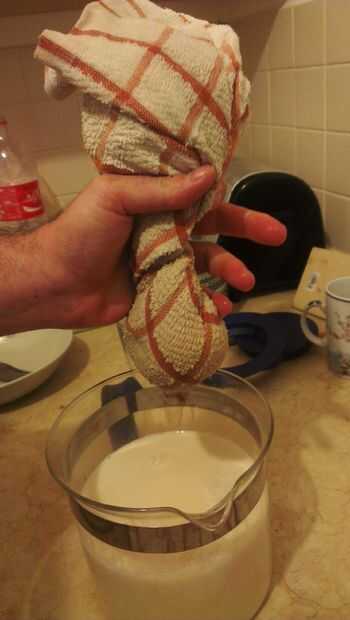 leche de almendras:16 onzas de almendrasRemoje las almendras en agua por 1 díaMezcla una taza de almendras con agua dos veces más aguaPrimero:Tensión con un paño de quesoSegunda tensión:Cepa con una prensa francesaVierta su leche de la almendra en un