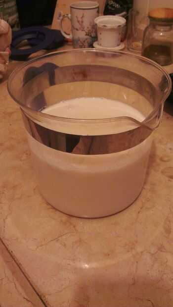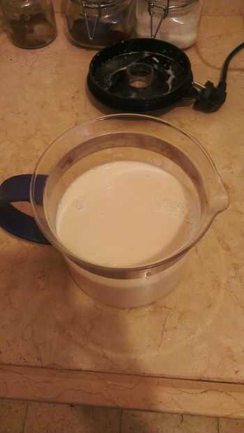 leche de almendras:16 onzas de almendrasRemoje las almendras en agua por 1 díaMezcla una taza de almendras con agua dos veces más aguaPrimero:Tensión con un paño de quesoSegunda tensión:Cepa con una prensa francesaVierta su leche de la almendra en un
