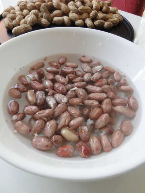 Sumergir los granos de maní en agua tibia durante 1 hora. Puede dejarlo durante la noche para que sea aún más suave.