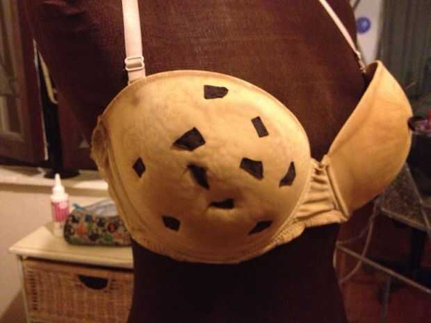 Después de cosido a mano algunos "chocolate chips" en el sujetador.
