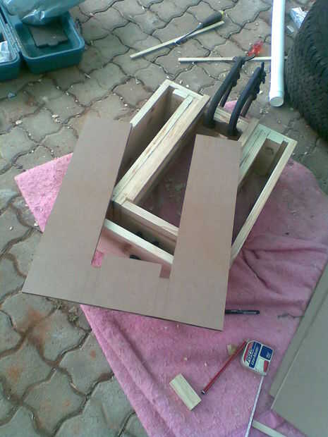 Se necesita un tablero de madera prensado, algunos pernos del panel, cola fría y paciencia ya que este paso puede tomar un tiempo muy largo.