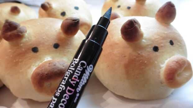 Una vez fuera del horno los chanchitos pequeños, tomar un marcador comestible y dibujar los ojos. Ahora puedes disfrutar de tus lechones cinnabacon super lindo y delicioso!