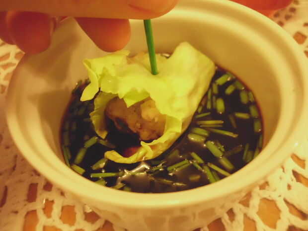 Hacer masitas de cerdo al vapor perfectamente sin una vaporera de bambú. Te voy a mostrar cómo.Paso 1: Configurar su olla Usted necesita encontrar un colador que cabe en su olla de cocción lenta. Tuve este vapor vegetal silicio flexible de mentira al
