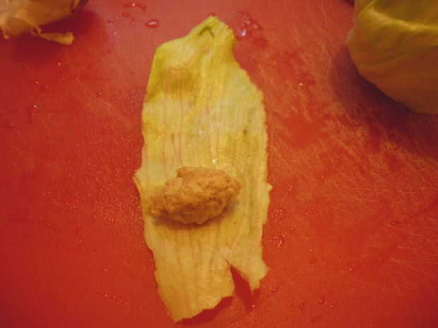 Lechuga envuelta masitas de cerdo (2 / 2 paso)