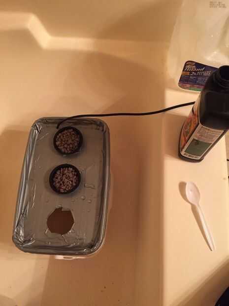 - El primer paso que usted quiere tomar es perforar los agujeros para las tazas netas. Yo carecía de las herramientas para que mi tienda hidropónico les perforados gratis para mí. Desea que los agujeros a igual distancia una de otra pero no demasiado cerca del borde. También desea hacer un agujero muy pequeño para el tubo de la línea aérea.