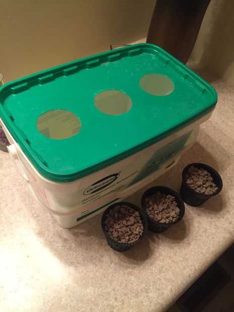 - Poner sus tres tazas netos (que deben tener sus plantas) en los tres agujeros perforados hacia fuera.