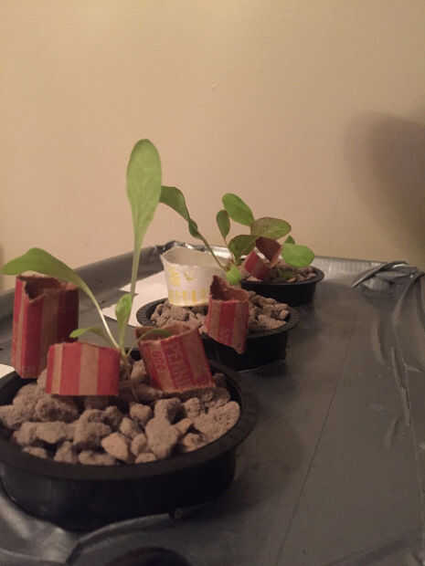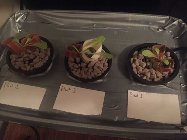 - Plantas débiles. Hay varias causas para plantas débiles como poca luz, demasiado poco nutrientes y algas. Mis plantas eran débiles debido a la poca luz y la acumulación de algas. Para combatir las algas utilicé peróxido de hidrógeno como describí antes. Para la poca luz, descubrí que tenía mi luz demasiado cerca a las plantas y que realmente se estaba centrando la mayoría de la luz hacia la planta y muy poco en los dos exteriores. Hice una base de madera para mi lámpara que lo aumentaría aproximadamente 6" más de lo que era ayudar a distribuir más uniformemente la luz. También hice "soportes" de papel que tuve que poner todo para ayudar a las plantas a pie. Mis dos plantas exteriores nunca realmente recuperados de la falta de luz. Han seguido creciendo pero definitivamente está atrofiados y lejos el más fuerte de la planta en términos de crecimiento.