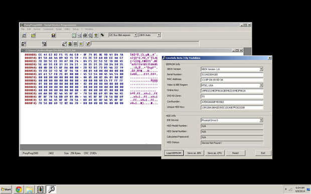 Antes de tomar una lectura primero deberás entender cómo tomar una lectura, por supuesto. Desconectar el DVD-Rom y disco duro de la placa base. Enchufe el cable de alimentación como el cable de video en la XBox (si no te va ser atascado con una luz amarilla). Ahora enciende y solo espere a Parpadeo rojo. Ahora usted puede tomar una lectura. Coloque las sondas en los pines de la eeprom y mantenerlos allí. Mientras mantiene allí golpear el botón 'leer' situado en la esquina izquierda de la ventana de PonyProg. Se le notifique de éxito y dar un código largo y extraño de lo que parece un galimatías. Ahora del archivo, guardar como... Asegúrese de guardarlo como un .bin y luego Google 'Liveinfo Beta 3' para leer la eeprom fácilmente. Eso es todo! Ahora puede utilizar esta clave para reparar tu XBox, softmod, actualizar a un disco duro más grande, etc.. Si le pareció útil esta guía, por favor deja un 'gracias' en la sección de comentarios. Espero que esto ayudó más que los otros guías que hay en el tema. Estoy seguro de que habría sido más agradecida de tener este que lo encontré. Gracias por comprobar hacia fuera mi guía y si tienes todo para probarlo, suerte! Espero que esto lo hace parecer menos intimidante así.
