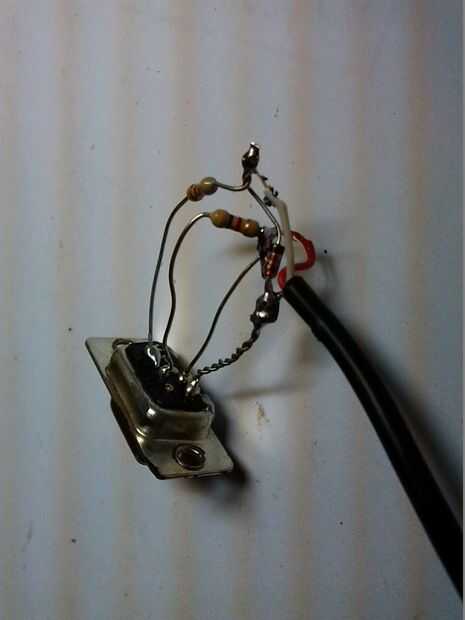 Gire el extremo restante del diodo a la otra resistencia, soldarlos juntos junto con el tercer cable y corte la longitud excesiva.