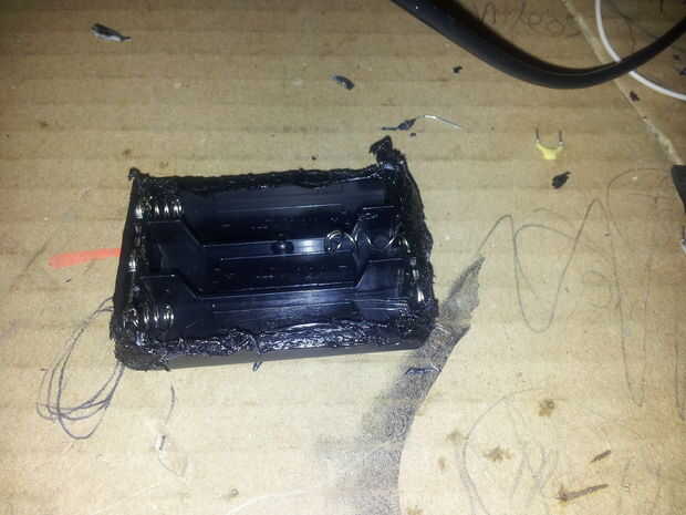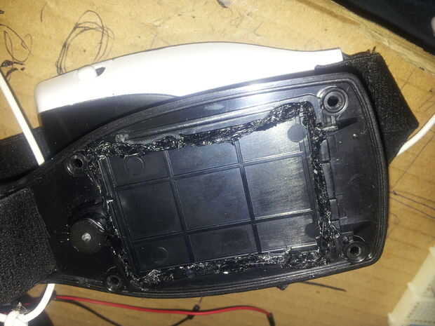 He utilizado un cuchillo caliente cortar suavemente el soporte de la batería apagado, pero también se puede usar el soldador. (Nota: Asegúrese de no inhalar los vapores y limpiar la soldadura inmediatamente después de que termines corte.)