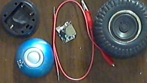 2. un orador - el altavoz en la foto está dentro de un neumático de coche de control remoto, pero puedes ver que es un altavoz mucho más grande, más potente que el estándar número de tarjeta de cumpleaños, pero hará cualquier altavoz.