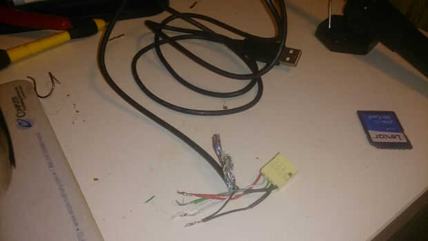 Lo primero que tienes que hacer es cortar el enchufe el cable USB interno dejando suficiente alambre para trabajar con entonces tira de la cubierta de los cables. El alambre 5 es para el blindaje.
