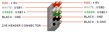 El lector que estaba usando tenía un puerto USB desde el mismo cable interno. Después de mirar las pistas de la placa de circuito determiné que era en USB2 que es la línea de 5 cables. Que el lector USB1.