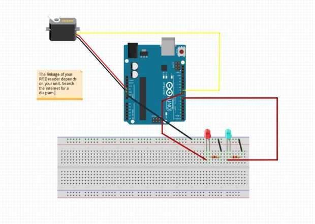 -RX y TX pines 10 y 11 respectivamente (la posición de estos pines en tu lector RFID depende del tipo, por lo tanto, no le estoy dando un diagrama)