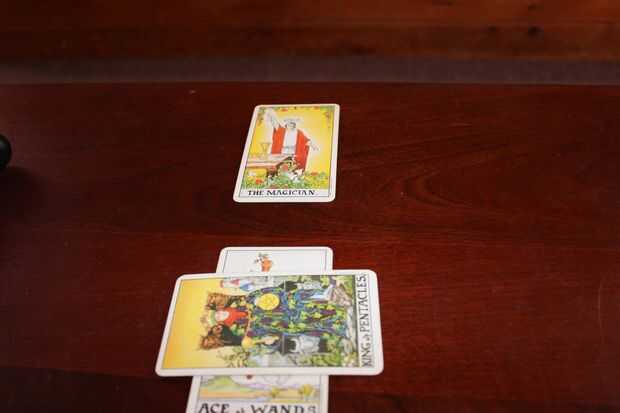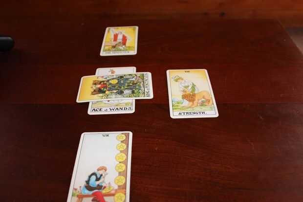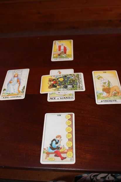 Tomar unas cuantas respiraciones profundas y barajar el mazo de cartas. Algunas personas les gusta decir una oración o un verso. Como usted baraja piensa en una situación que usted quiere saber sobre o una pregunta desea contestados. A continuación tarjetas de diseño los seis primeros como se muestra en las fotos.