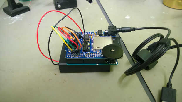 Luego conectado el escudo de wav a mi Arduino Uno utiliza los conectores de apilamiento de escudo, en la tarjeta SD, enchufada los altavoces iHome y quemado el bosquejo de ejemplo del escudo de wav y escuchó a la magia.