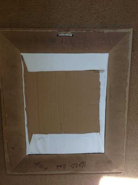 En caso de que usted no ha calculado hacia fuera, cortar el cartón a la medida de la parte interior del marco. Esta fotografía muestra el cartón cubierto con la tela ya insertado.