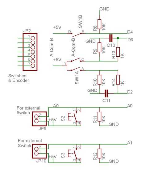 Hay un montón de circuitos del debounce en internet para codificadores rotatorios pero quería algo que fuera un) easy & b) usando piezas que tenía en mi banco. Resulta que al conectar a la clavija de entrada a través de un 1K, con un K de 10 hacia abajo y añadir un casquillo de 100nf a través para lo del almacenador intermediario, podemos ir de inservible a casi perfecta con dos partes adicionales. Es básicamente un filtro de paso bajo crudo. Diagrama del circuito se muestra en la segunda foto.