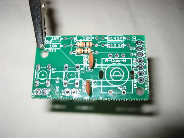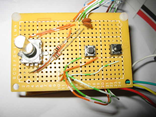 La versión de Perfboard es sólo un caso de obtener las resistencias de la derecha en los lugares correctos. Hay una ligera diferencia en las dos versiones aquí porque algunos de los desplegables de 10K puse en la placa del controlador para la versión de perf-Junta mientras se encuentran en la placa de entrada para el PCB. No importa lo puedo ver.