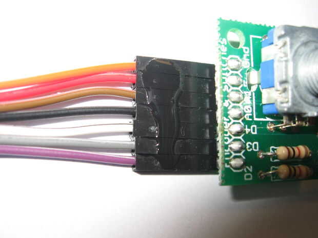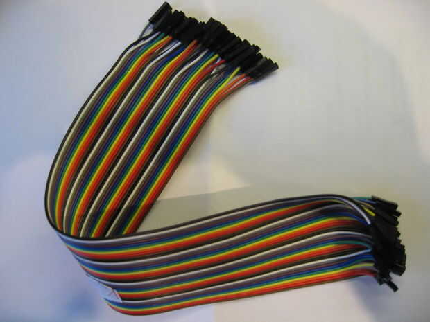 Me pareció que la manera más fácil (y más barata) hacer esto obtener un cable plano de 40 vías con headers hembra en cada extremo (una libra o así en e-bay) y pele todas las que necesitaba para cada conexión. Una vez que son los conectores, puede corregir los conectores separados juntos en un bloque con un par de gotas de pegamento de baja viscosidad.