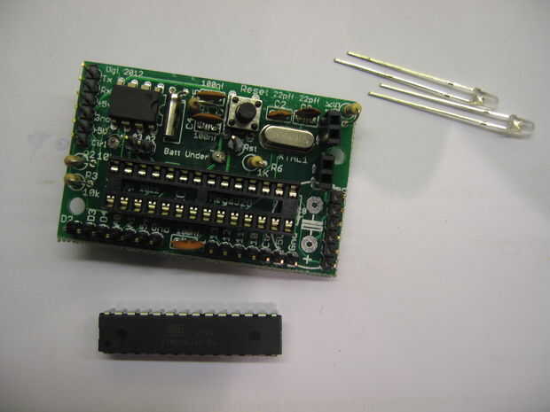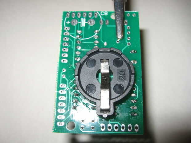 En general es más fácil empezar a soldar desde el centro hacia afuera. Sin embargo, necesita hacer algunos de los componentes de la parte superior antes del portapilas porque cubre las almohadillas de soldadura para muchas de ellas. Esto es un poco incómodo por lo que no podría hacer el mejor proyecto de primera pero nada en este módulo es terriblemente difícil. Como siempre, pone los componentes a través de sus orificios, curva conduce o pernos hacia fuera un poco para mantenerlos, voltee la Junta, soldadura y clip off.