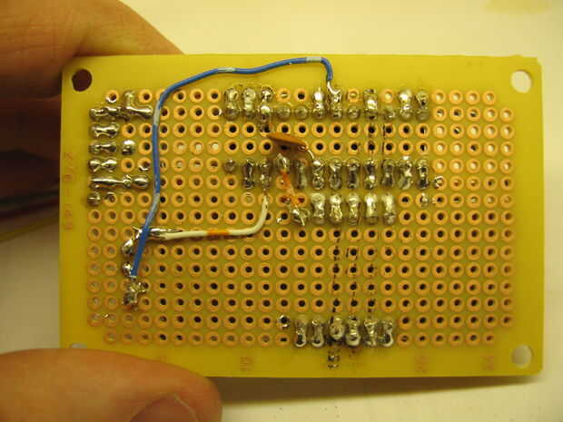 No tomar fotografías muy detalladas de la Asamblea de la Junta de perf, pero básicamente implicó la pantalla y el chip de soldadura cada una fila desde el borde y luego pernos apropiado cableado juntos - ver el esquema.