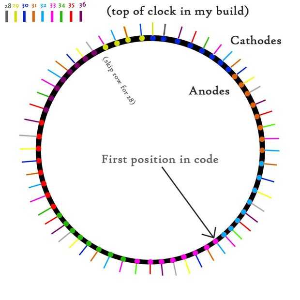 Esto tiene que ser la parte más difícil de hacer este reloj. Aunque parece muy complicado a primera vista, después de los primera pareja los anillos alrededor del reloj hará sentido y verá el patrón. El patrón es bastante simple, que cada 8 LEDs en una fila están conectados juntos para la cuadrícula Charlieplex.