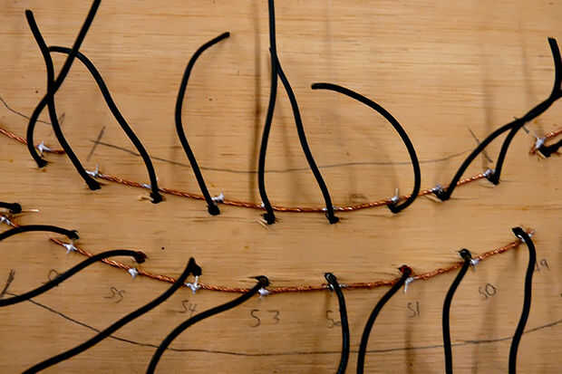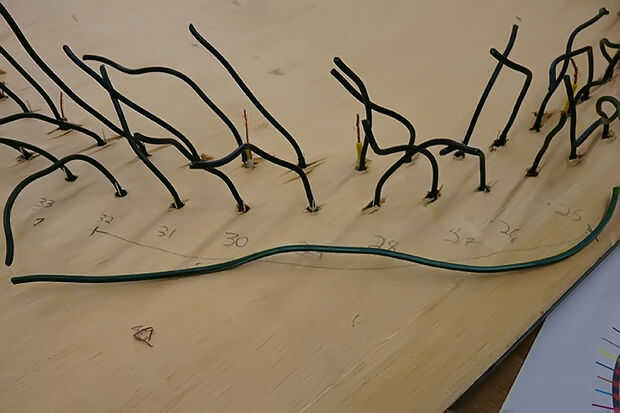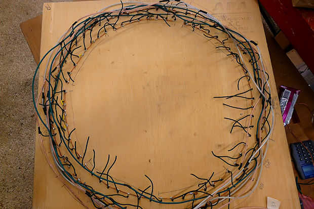 Para ello, he trabajado en una hacia la izquierda y había añadido poco a poco los LEDs al cable como fui en los círculos. Utiliza una longitud de alambre de la longitud del círculo y comenzó en un LED y trabajado lentamente en un círculo añadiendo los LEDs al cable como la convocatoria de diagrama.