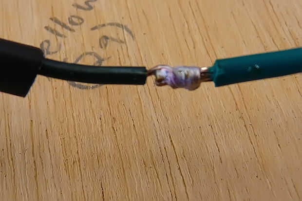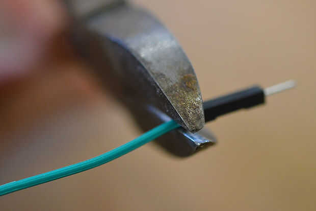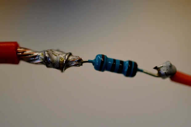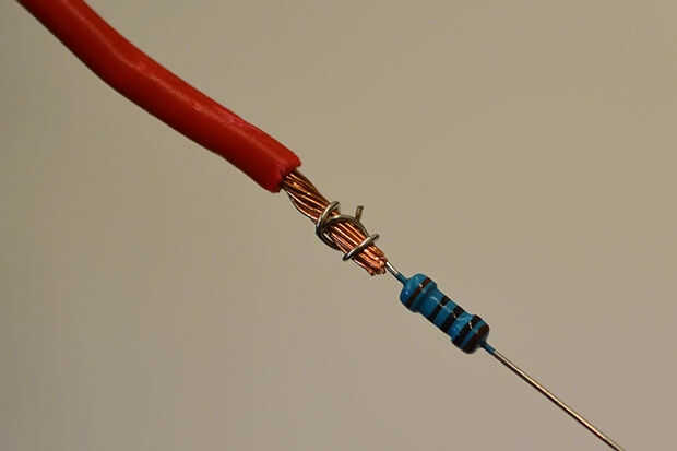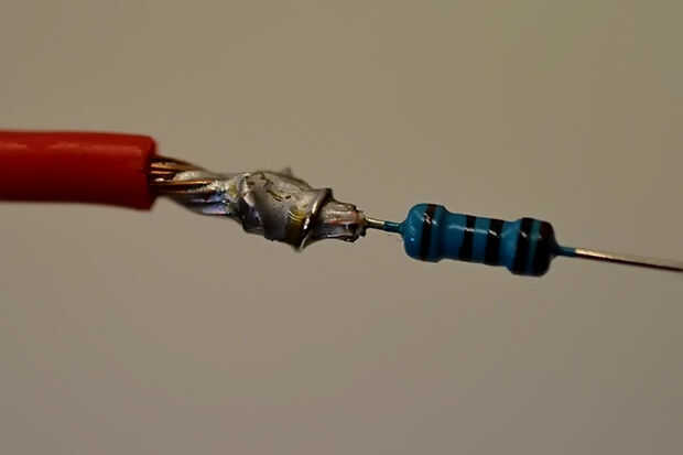 Simplemente tome los extremos de los cables que van a fijarse a la Junta, la soldadura en una resistencia y abrigo del encogimiento con envoltura o cinta aislante.