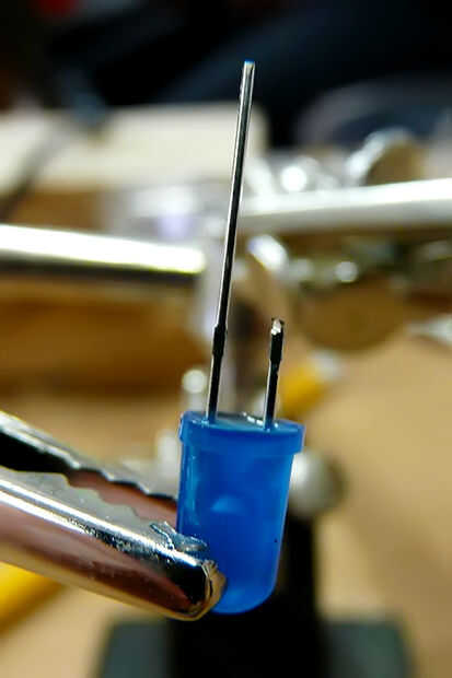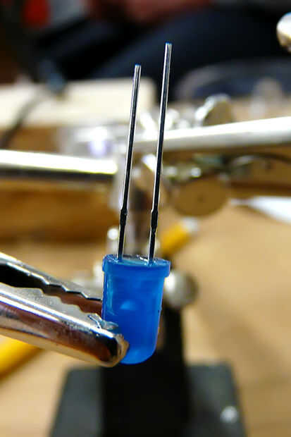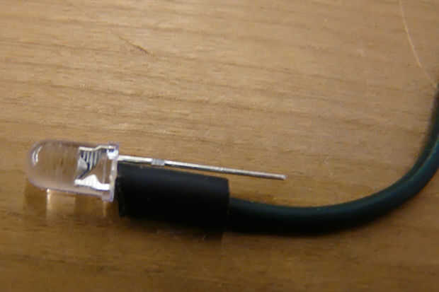 Después de muchos ensayos y error procesos de soldar los LEDs, he encontrado la forma más fácil es soldar un cable solo para el lado del cátodo del LED y del encogimiento envolver, para evitar que los pernos cortocircuitos por sobre otros. Este método deja el pin del lado del ánodo a la soldadura directamente a un alambre de cobre sin aislamiento, ahorrando mucho tiempo y materiales.
